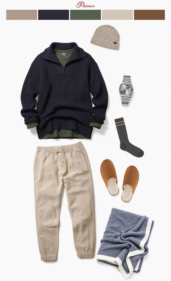 This is my hibernation set, built around three requirements, comfort, warmth, and still feeling like I'm wearing real clothes. It’s not “loungewear” exactly, it’s more like… cabin adjacent.